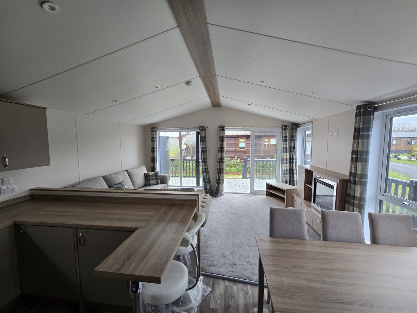 The Mountview Lodge at High Farm Holiday Park offers premium residential-spec comfort in a spacious 40x16ft layout. Finished with a full wrap-around decking, it’s designed for relaxing outdoor living as well as cosy year-round stays. Thoughtful interior details and a high-quality build make this lodge ideal for both holiday escapes and extended breaks. Available for sale at £129,900
